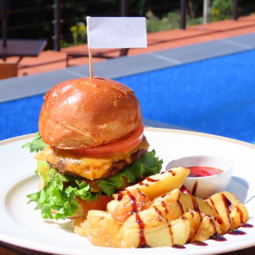 地元で育てられた新鮮な野菜をたっぷり使い、自家製ピクルスを添えました。メインのパティは旨味が豊富ながらも脂身の少ないヘルシーな阿蘇の赤牛を使用。柔らかな肉質は女性のお客様にも食べやすいと好評です。阿蘇の醤油をベースにした自家製ソースが、赤牛の深い味わいを引き立てています。この土地ならではの贅沢です◎