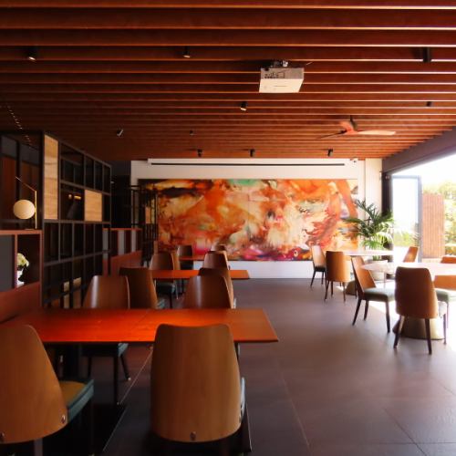【開放感あふれるテーブル席で、心地よいひとときを】ゆったりとお寛ぎいただけるテーブル席を、全10卓ご用意しております。開放的な空間の中で、南阿蘇の美食をゆっくりとお楽しみいただけます。