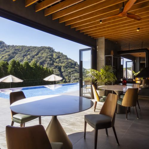 【南阿蘇の大自然に囲まれた特別な空間】上質な静けさと美しさに包まれ、まるでもうひとつの楽園にいるかのような非日常的な時間。贅を尽くした理想郷で極上の美食体験を。朝は爽やかに朝食を、昼は開放的なテラスでランチを、夜は星降る阿蘇の空を背景に心がとろけるような至福のディナーをご堪能いただくことができます◎